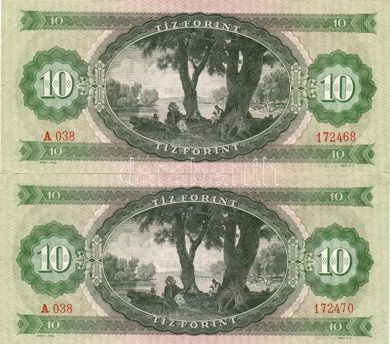 1969. 10Ft (2x) Csak egy szám ugrással ugyanabból a sorozatszámból, mi... https://www.darabanth.com/hu/31-Gyorsarveres/31.0/Numizmatika/Magyar-es-kulfoldi-bankjegyek-Hungarian-and-foreign-banknotes~222/1969-10Ft-2x-Csak-egy-szam-ugrassal-ugyanabbol-a-sorozatszambol-mindketto-hatoldalan-job~II59409