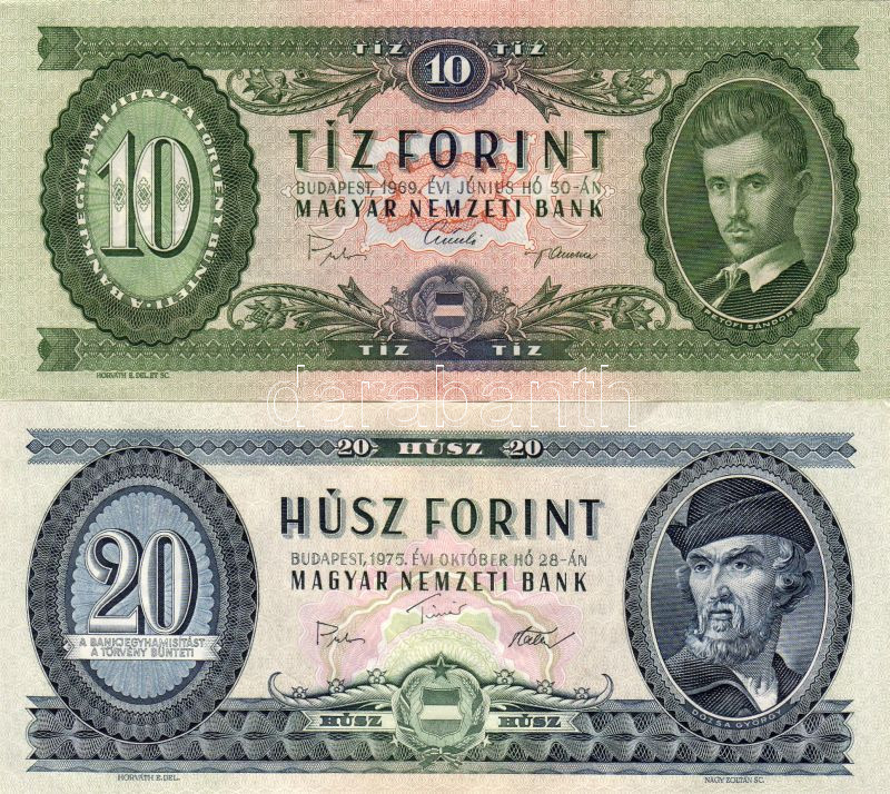 Leírás: 1969. 10Ft + 1975. 20Ft 2klf db T:I