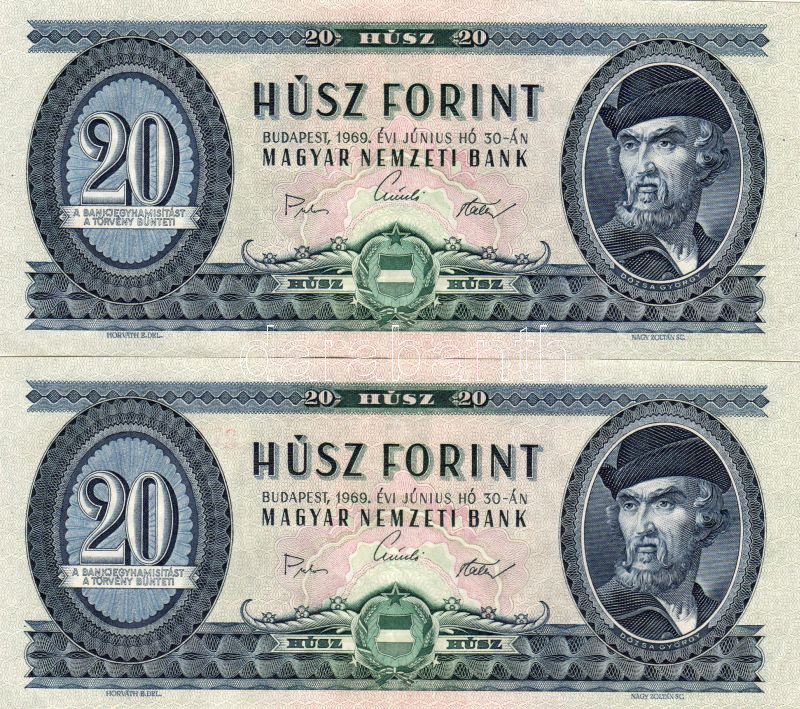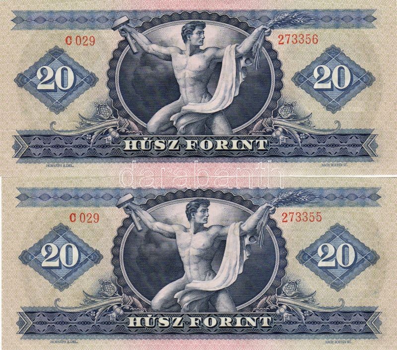 Leírás: 1969. 20Ft (2x) egymásutáni sorszámokkal T:II+ Csak egyszer hajtva, törve nem!