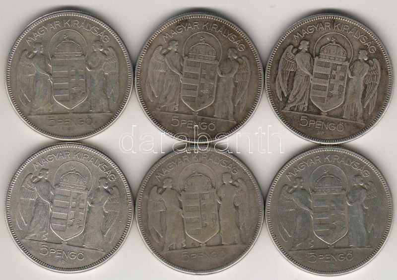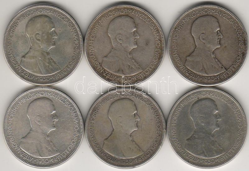 Leírás: 1930. "Horthy-jobbos" 5P ezüst 6db T:3