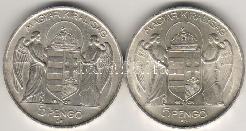 1939. "Horthy balos" 5P ezüst T:2 (2x) pici ph. https://www.darabanth.com/hu/31-Gyorsarveres/31.0/Numizmatika/Magyar-es-magyar-verdejelu-fem-es-ezustpenzek-Hungarian-and-Hungarian-mint-marked-metal-and-silver~231/1939-Horthy-balos-5P-ezust-T2-2x-pici-ph~II59356