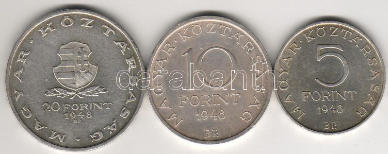 Leírás: 1948. "Szabadságharc" sor 5Ft+10Ft+20Ft ezüst 3db T:2,2+