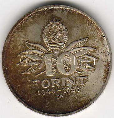 Leírás: 1956. "10 éves a Ft" 10Ft ezüst T:1