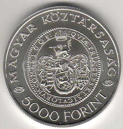 2005. "Bocskai" 5000Ft ezüst T:BU tanúsítvánnyal, kapszulában. Csak 30... https://www.darabanth.com/hu/31-Gyorsarveres/31.0/Numizmatika/Magyar-es-magyar-verdejelu-fem-es-ezustpenzek-Hungarian-and-Hungarian-mint-marked-metal-and-silver~231/2005-Bocskai-5000Ft-ezust-TBU-tanusitvannyal-kapszulaban-Csak-3000db-RR~II59365