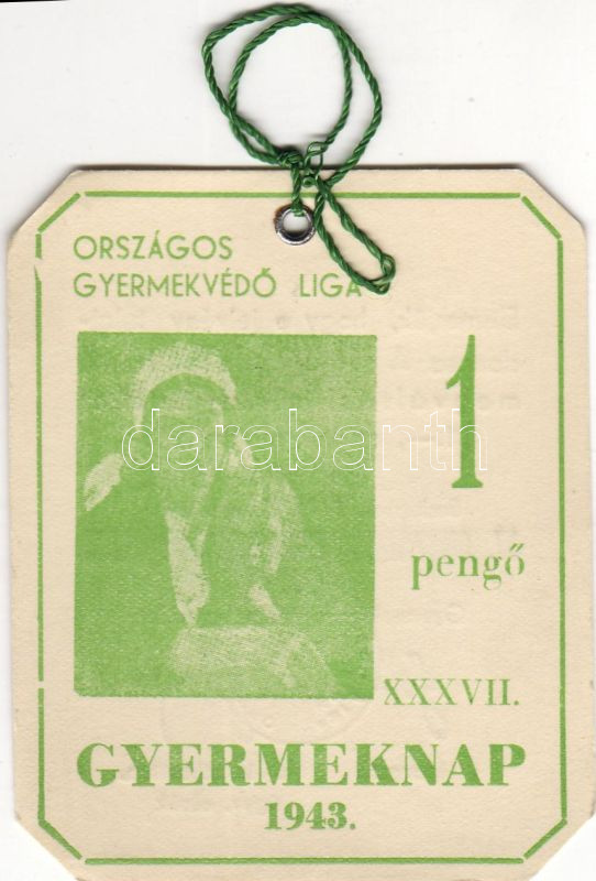 Leírás: 1943. Gyermekvédőliga 1P megváltási jegy T:I