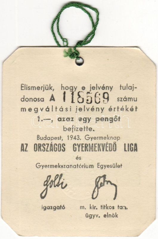 1943. Gyermekvédőliga 1P megváltási jegy T:I https://www.darabanth.com/hu/31-Gyorsarveres/31.0/Numizmatika/Papirpenzek-szuksegpenzek-hadifogolypenzek-Banknotes-notgeld-warprisoner-notes~223/1943-Gyermekvedoliga-1P-megvaltasi-jegy-TI~II59488