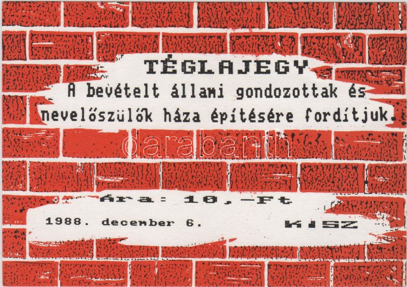 Leírás: 1988. Téglajegy 10Ft "Állami gondozottak javára" T:I