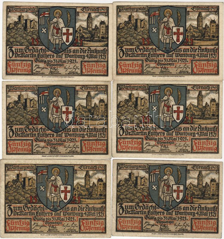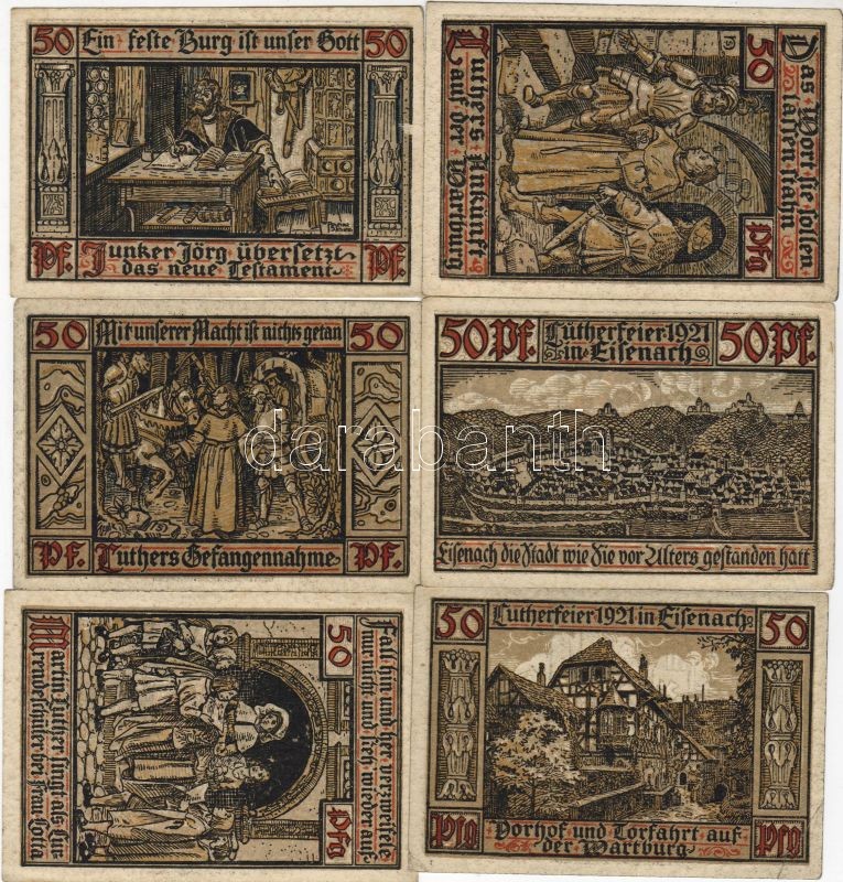 Leírás: D.Reich 1921. Eisenach "Luther" szükségpénz 6 klf db