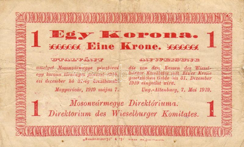 Leírás: Magyaróvár 1919. 1K T:II/III
