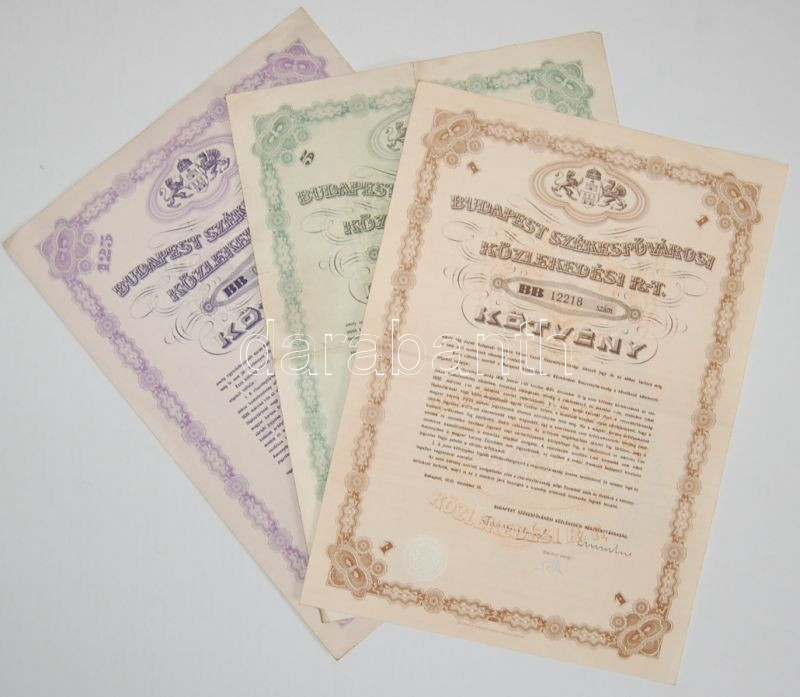 Leírás: 1930. Bpest Székesfőváros Közlekedési R.-T. 3 klf névértékű kötvénye