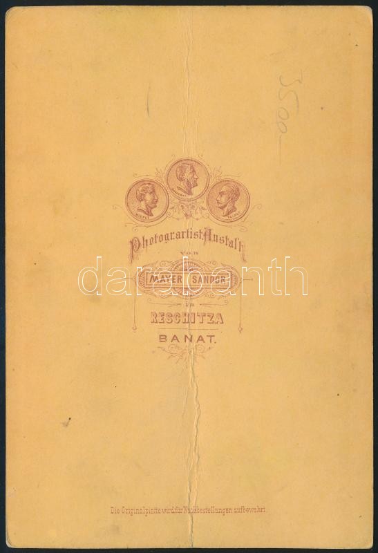 Leírás: cca 1880 Vajdahunyad - Hunedoara Mayer Sándor fényképész. Reschitza. Keményhátú fotó 11x17 cm
