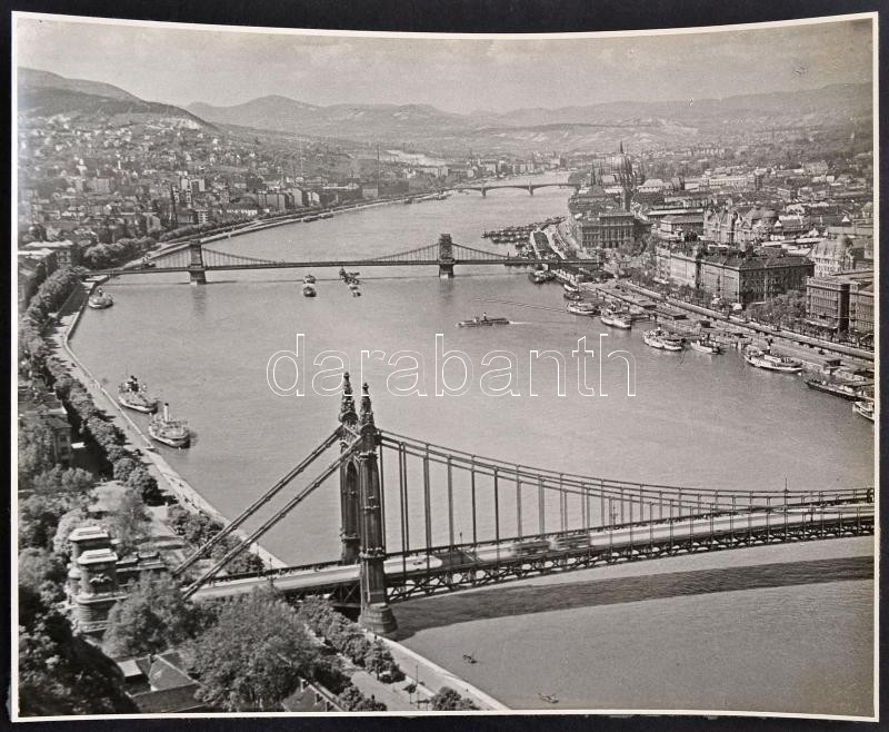 Leírás: cca 1935 Budapest, professzionális minőségű, vintage fénykép a dunai panorámáról, 23,5x29,5 cm