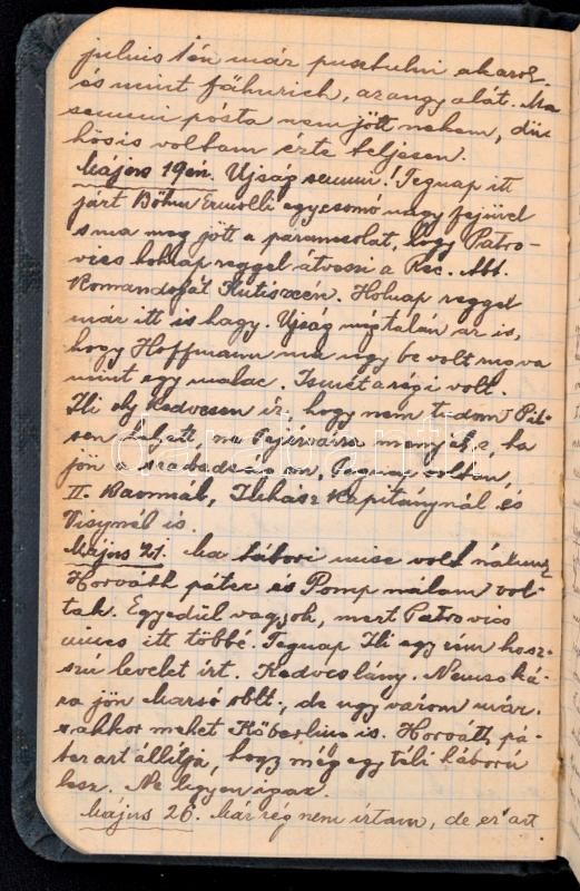 1916 Magyar katona által vezetett világháborús katonai napló. 1918 november 1-ig. Eugen Papp Inf. Reg. Hindenburg No. 69. csapategység 188 beírt oldal 5 rajzzal + 1 fénykép. Egészvászon kötésben
