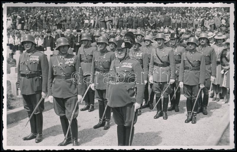 Leírás: 1941 Délvidék, Zenta, hősi temetés. Drágói Szemes Vazul katonatiszttel. Fotólap