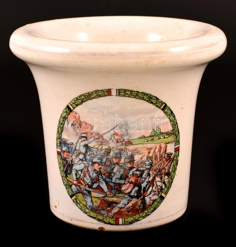 cca 1916 harci jelenetes porcelán hadimozsár, matricás, jelzés nélkül,... https://www.darabanth.com/hu/31-Nagyaukcio/31.1/Festmeny-mutargy-papirregiseg-egyeb/Militaria~13316/cca-1916-harci-jelenetes-porcelan-hadimozsar-matricas-jelzes-nelkul-apro-csorbakkal-tor~II1943545