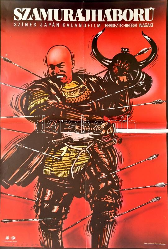 1986 Miklós Károly (?-): Szamurájháború, filmplakát, hajtott, 80×60 cm https://www.darabanth.com/hu/31-Nagyaukcio/31.1/Festmeny-mutargy-papirregiseg-egyeb/Plakat~12802/1986-Miklos-Karoly-Szamurajhaboru-filmplakat-hajtott-80C39760-cm~II1945107