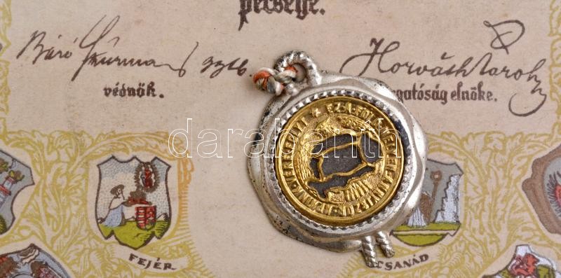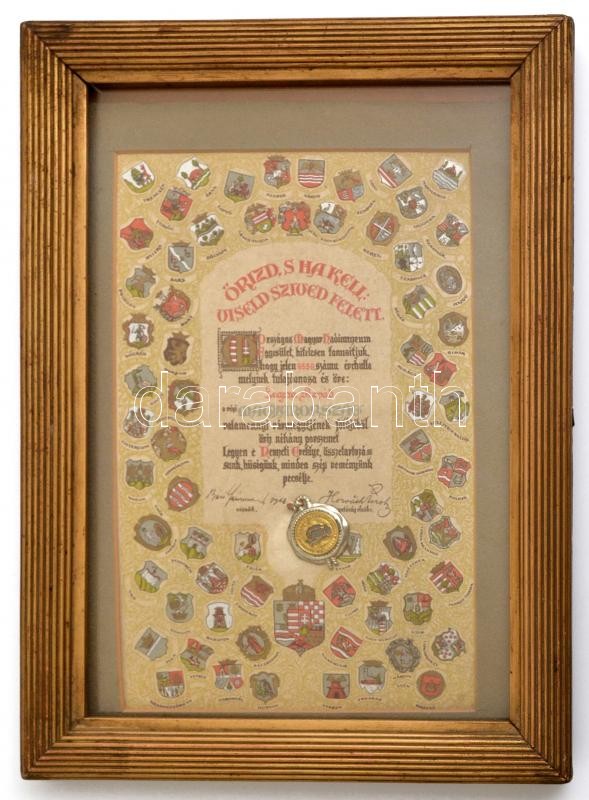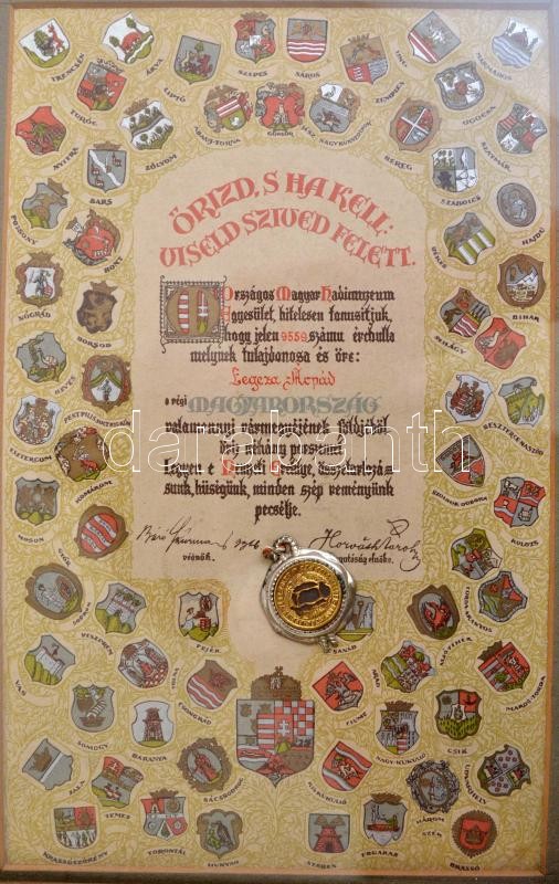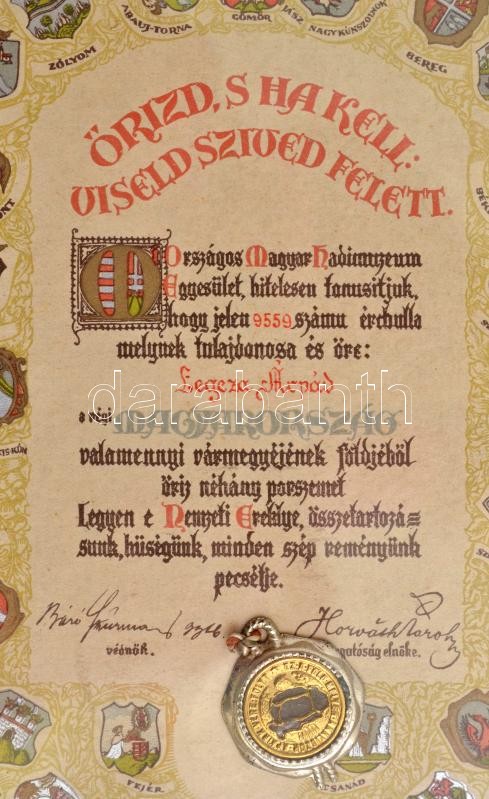 1922 az Országos Magyar Hadimúzeum Egyesület sorszámozott, névre szóló (Legeza Árpád nemzeti ereklyéje, Magyarország valamennyi vármegyéjének földjéből származó földet tartalmazó emlék ércbulla, díszes emléklapon, paszpartuban, üvegezett fa keretben