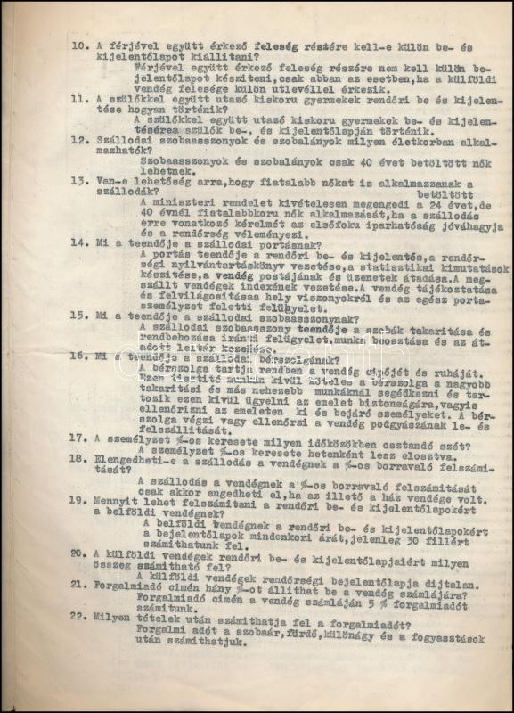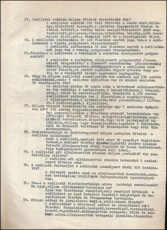 Leírás: cca 1938 Szállodás mestervizsga kérdései válaszokkal, Hotel Westend Szálló, Berlini tér pecséttel, 4 gépelt oldal