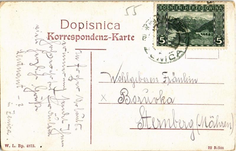 Leírás: Zenica, Koceva ulica / Koseva Strasse / street view with cart and butcher shop. W.L. Bp. 4873. (EK)