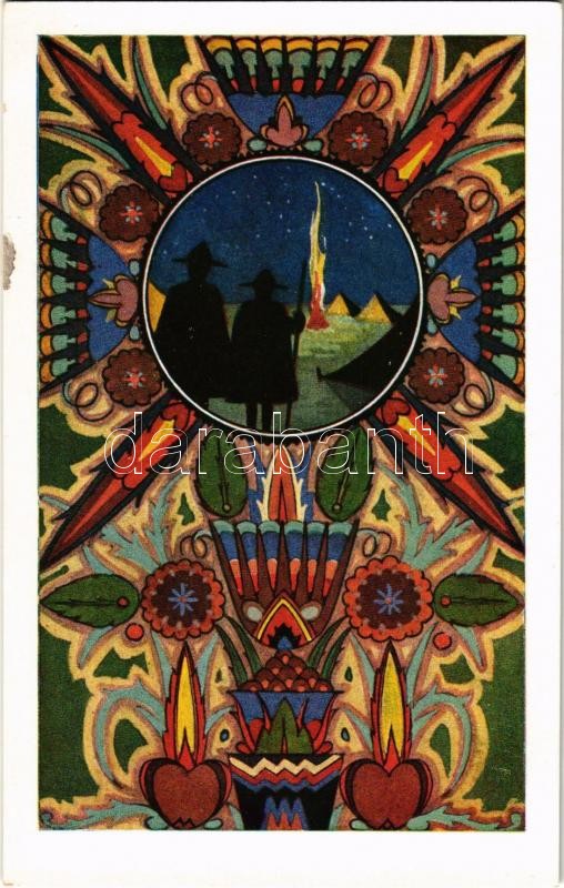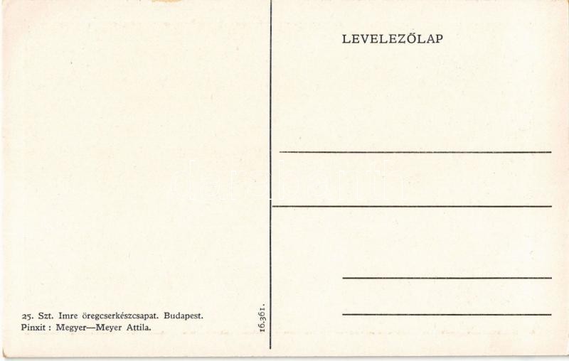 Leírás: A 25. Szt. Imre öreg cserkészcsapat képeslapja / Hungarian scout oldboys group. Art Nouveau s: Megyer-Meyer Attila