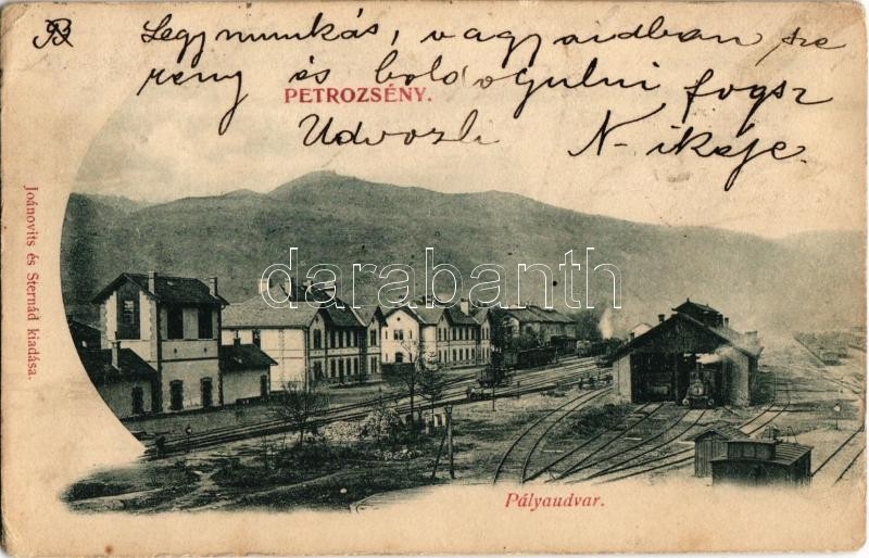 Leírás: 1899 Petrozsény, Petrosani; pályaudvar, vasútállomás, gőzmozdony. Joánovits és Sternád kiadása / Bahnhof / railway station with locomotive (EK)