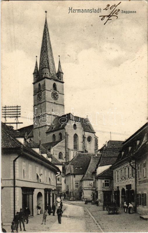 1907 Nagyszeben, Hermannstadt, Sibiu; Zsák utca, Evangélikus templom, ... https://www.darabanth.com/hu/31-Nagyaukcio/31.1/Kepeslapok/Erdely~13126/1907-Nagyszeben-Hermannstadt-Sibiu-Zsak-utca-Evangelikus-templom-uzletek-Saggasse-street~II1944098