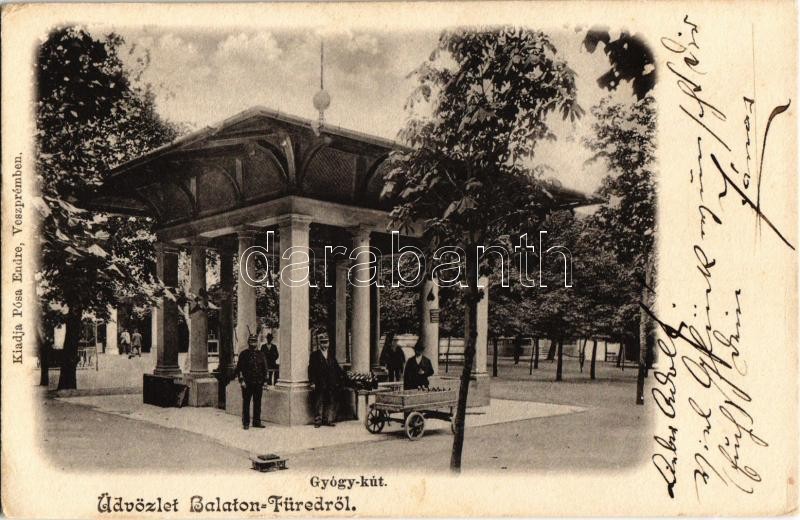 Leírás: 1900 Balatonfüred, gyógykút, savanyúvíz szállítás. Pósa Endre kiadása (EK)