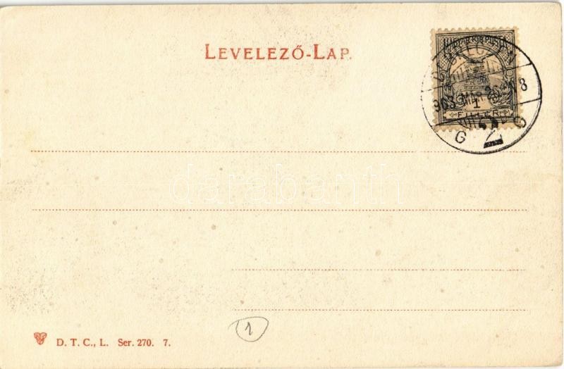 Leírás: 1903 Hortobágy, Magyar juhok, folklór. D.T.C.L. Ser. 270. 7. Kiadja Komáromi