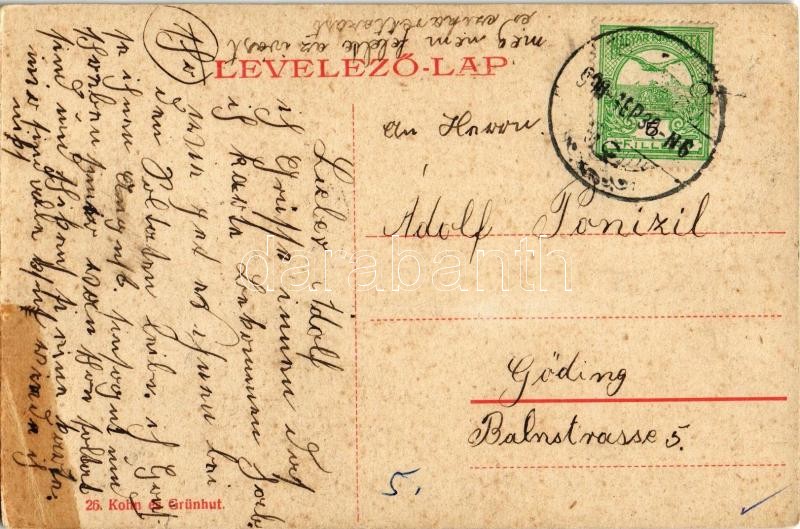 Leírás: 1908 Budapest XXII. Budafok, Kálváriahegy utca, Ábel József és Riegler üzlete. W.L. (?) 26. Kohn és Grünhut (EK)