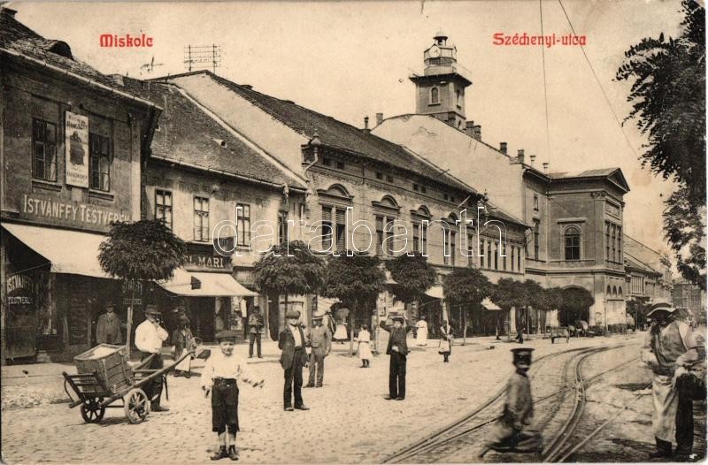 1912 Miskolc, Széchenyi utca, Tűzoltó őrtorony, villamossínek, Istvánf... https://www.darabanth.com/hu/31-Nagyaukcio/31.1/Kepeslapok/Magyarorszag~13125/1912-Miskolc-Szechenyi-utca-Tuzolto-ortorony-villamossinek-Istvanffy-testverek-uzlete-t~II1941687