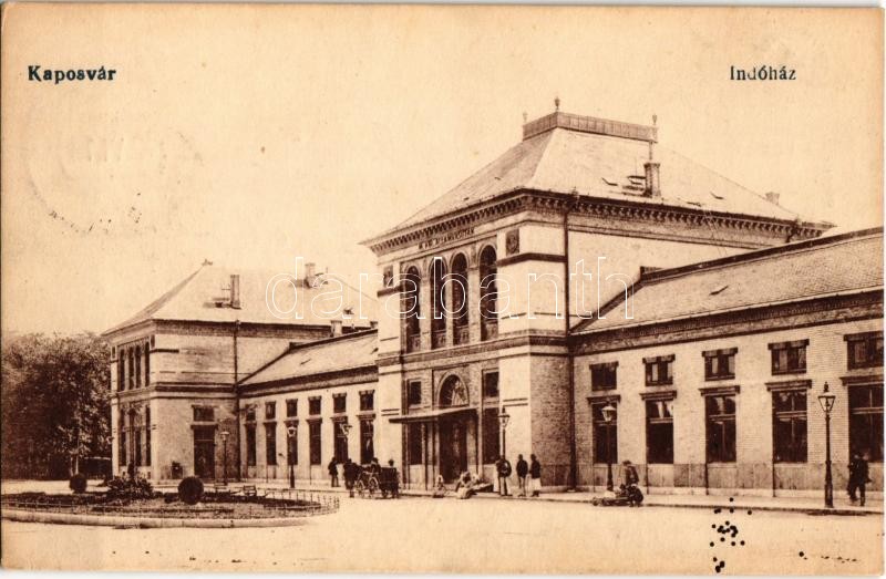 Leírás: 1918 Kaposvár, Indóház, vasútállomás + M. kir. 309. honv. gyal. ezr. III. zálj. parancsnoksága