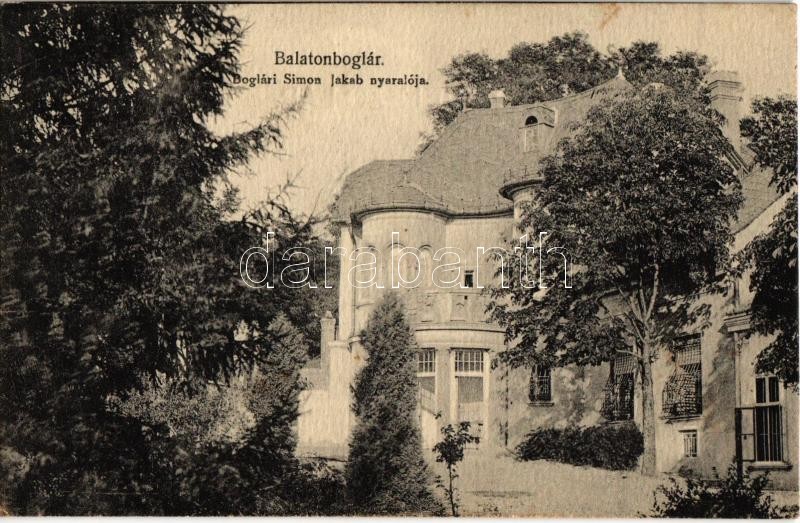 Balatonboglár, Bolgári Simon Jakab nyaralója https://www.darabanth.com/hu/31-Nagyaukcio/31.1/Kepeslapok/Magyarorszag~13125/Balatonboglar-Bolgari-Simon-Jakab-nyaraloja~II1937118