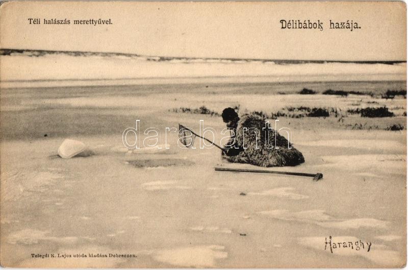 Hortobágy, Délibábok hazája, Téli halászás merettyűvel, Telegdi K. Laj... https://www.darabanth.com/hu/31-Nagyaukcio/31.1/Kepeslapok/Magyarorszag~13125/Hortobagy-Delibabok-hazaja-Teli-halaszas-merettyuvel-Telegdi-K-Lajos-utoda-kiadasa-Ha~II1932590