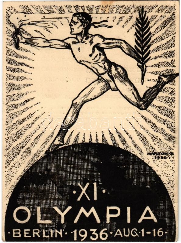 Leírás: 1936 Berlin, XI. Olympia. Dr. Illyés László kiadása, megemlékezése az olimpia megnyitójáról / Summer Olympics in Berlin. So. Stpl s: Márton Lajos