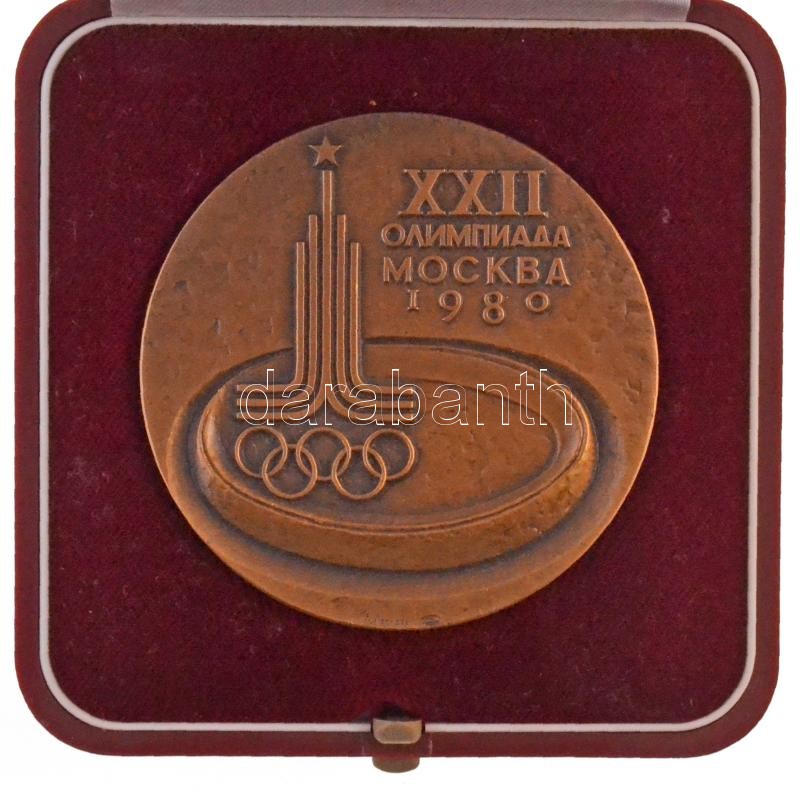 Szovjetunió 1980. "Moszkvai Olimpia 1980" kétoldals Br, résztvevői emlékérem, eredeti tokban. Szign: A.Leonova (125,93g/60mm) T:1 / Soviet Union 1980. "Olimpic Games Moscow 1980" double-sided Br participation medallion in original case. Sign.: A. Leonova (125,93g/60mm) C:XF