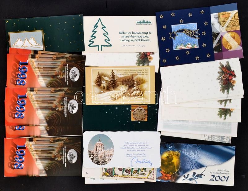 Leírás: Országgyűlési képviselők, polgármesterek aláírása üdvözlőlapokon, 28 db