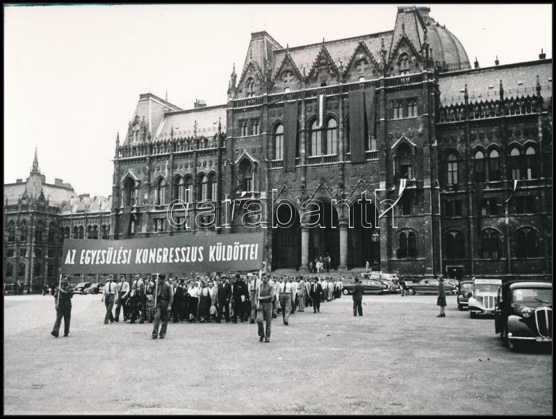 Leírás: 1948 Az Egyesülési Kongresszus küldöttei, MTI-fotó, hátulján pecséttel jelzett, 9×12 cm