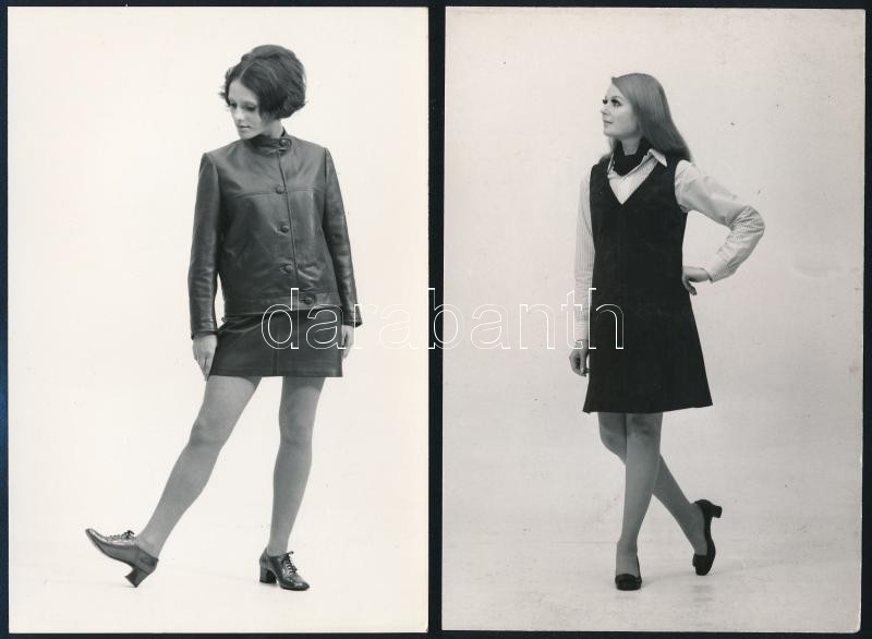 Leírás: 1969 Divatos bőrruházat, 4 db feliratozott vintage manöken fotó, 17x12 cm