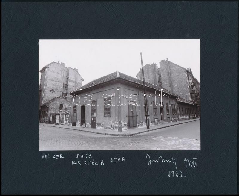 1982 Jankovszky György(1946-): Budapest, VIII. kerület, Futó utca és Kis Stáció utca sarka, pecséttel jelzett fotó, feliratozva, kartonra kasírozva, 12x18 cm