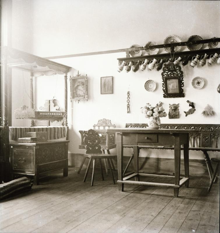cca 1939 Thöresz Dezső (1902-1963) békéscsabai gyógyszerész és fotóművész hagyatékából - 19 db vintage negatív a lakásáról és egy szlovák házról, 6x6 cm