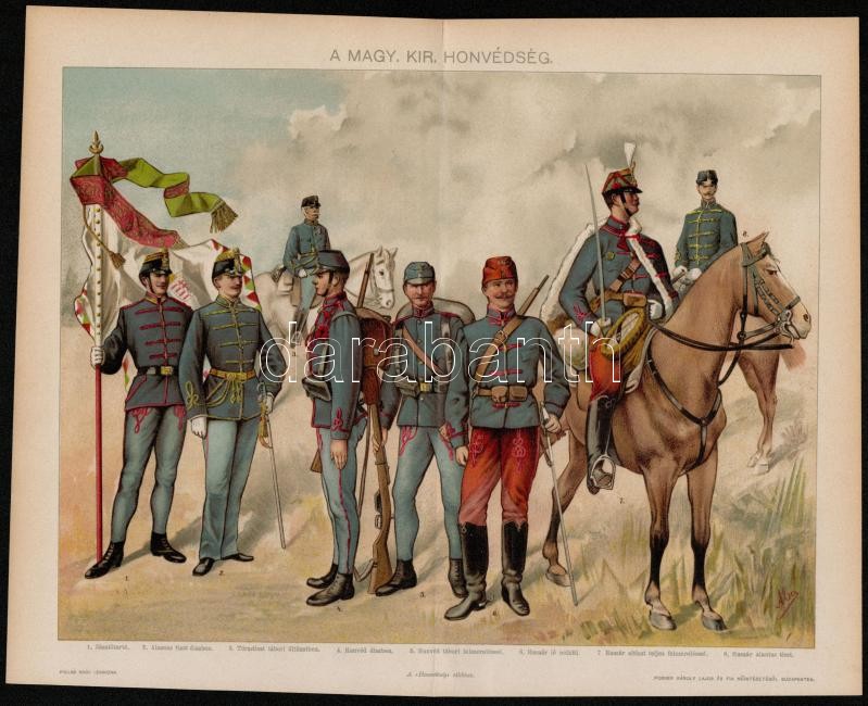 A magyar királyi honvédség, színes nyomat a Honvédség cikkéből https://www.darabanth.com/hu/310-Gyorsarveres/310.0/Festmeny-mutargy-papirregiseg-egyeb/Militaria~26/A-magyar-kiralyi-honvedseg-szines-nyomat-a-Honvedseg-cikkebol~II1665447