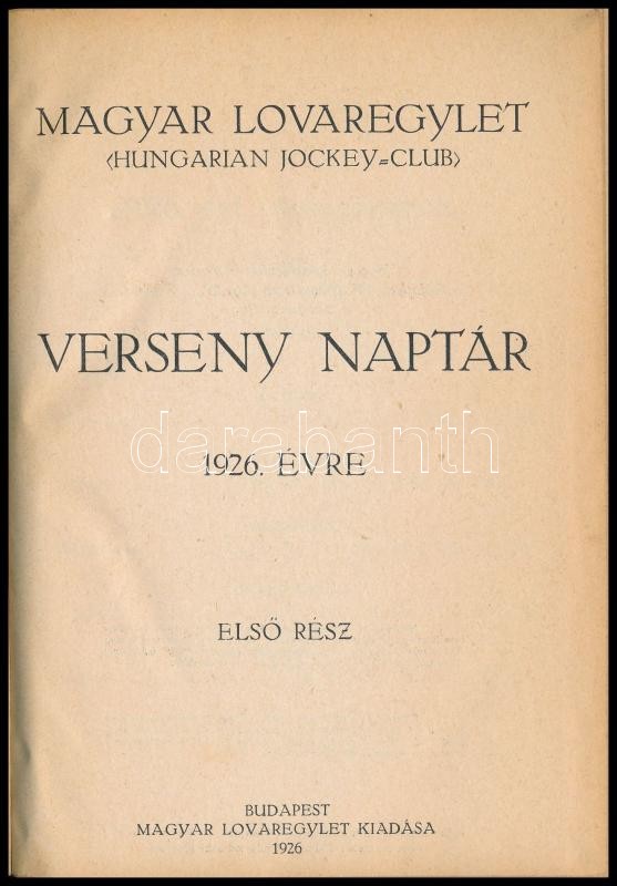 1926 Bp., Magyar Lovaregylet verseny naptára első rész, 224p https://www.darabanth.com/hu/310-Gyorsarveres/310.0/Festmeny-mutargy-papirregiseg-egyeb/Nyomtatvanyok~28/1926-Bp-Magyar-Lovaregylet-verseny-naptara-elso-resz-224p~II1689005