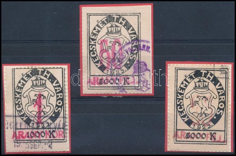 Leírás: 1924 Kecskemét Törvényhatósági jogú város 3 klf okirati illetékbélyege (7.750)