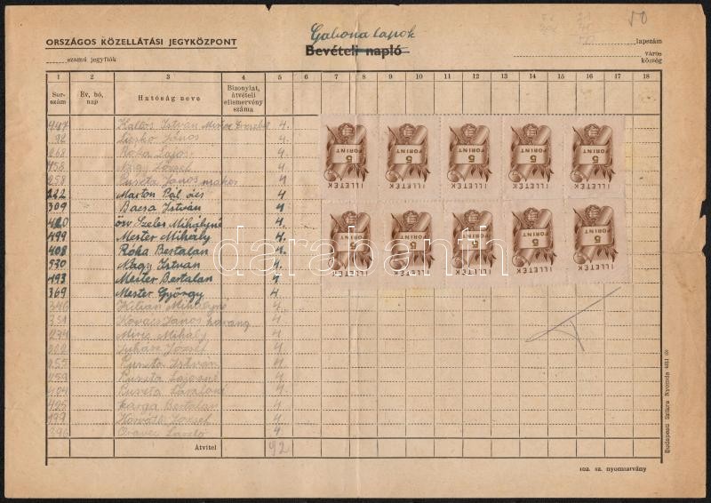 Leírás: 1951 Gabonalap 184Ft illetékbélyeggel / document wit 184Ft fiscal stamps
