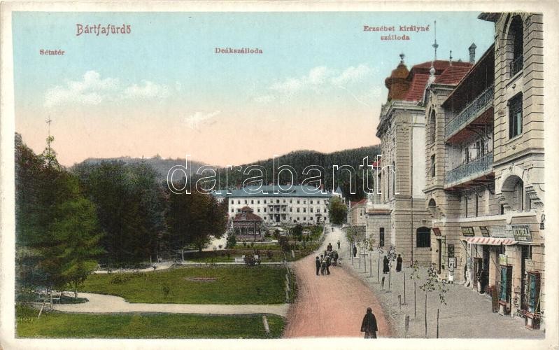 Bártfafürdő, Bardejovské Kúpele, Bardiov; Sétatér, Deák és Erzsébet ki... https://www.darabanth.com/hu/310-Gyorsarveres/310.0/Kepeslapok/Felvidek~300007/Bartfafurdo-Bardejovske-Kupele-Bardiov-Setater-Deak-es-Erzsebet-kiralyne-szalloda-~II1692619