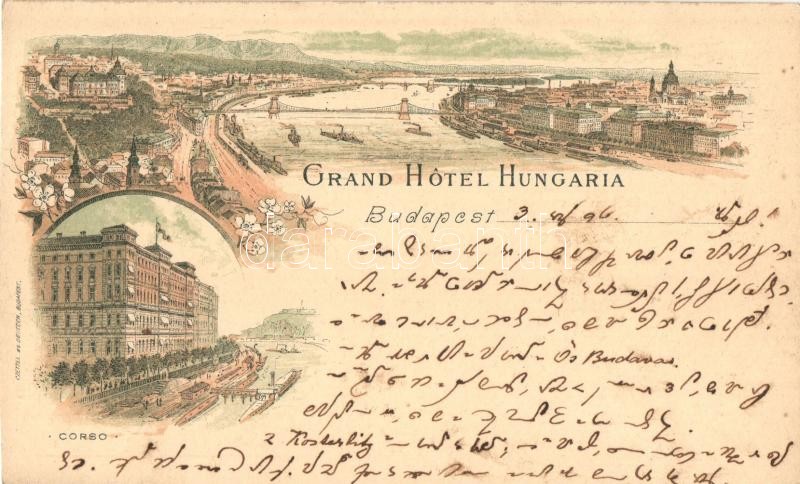 1896 (Vorläufer!) Budapest, Grand Hotel Hungária, Corso. Floral, litho... https://www.darabanth.com/hu/310-Gyorsarveres/310.0/Kepeslapok/Magyarorszag~300005/1896-Vorlaufer-Budapest-Grand-Hotel-Hungaria-Corso-Floral-litho-vagott-cut~II1689457