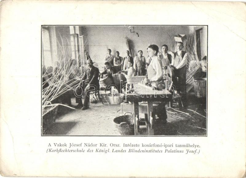 Budapest XIV. Vakok József Nádor Kir. Orsz. Intézete, kosárfonó ipari ... https://www.darabanth.com/hu/310-Gyorsarveres/310.0/Kepeslapok/Magyarorszag~300005/Budapest-XIV-Vakok-Jozsef-Nador-Kir-Orsz-Intezete-kosarfono-ipari-tanmuhely-tanulokkal-b~II1588465