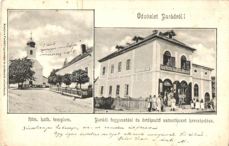 Parád, Római katolikus templom, Községi fogyasztási és értékesítő szöv... https://www.darabanth.com/hu/310-Gyorsarveres/310.0/Kepeslapok/Magyarorszag~300005/Parad-Romai-katolikus-templom-Kozsegi-fogyasztasi-es-ertekesito-szovetkezet-uzlete-es~II1584744
