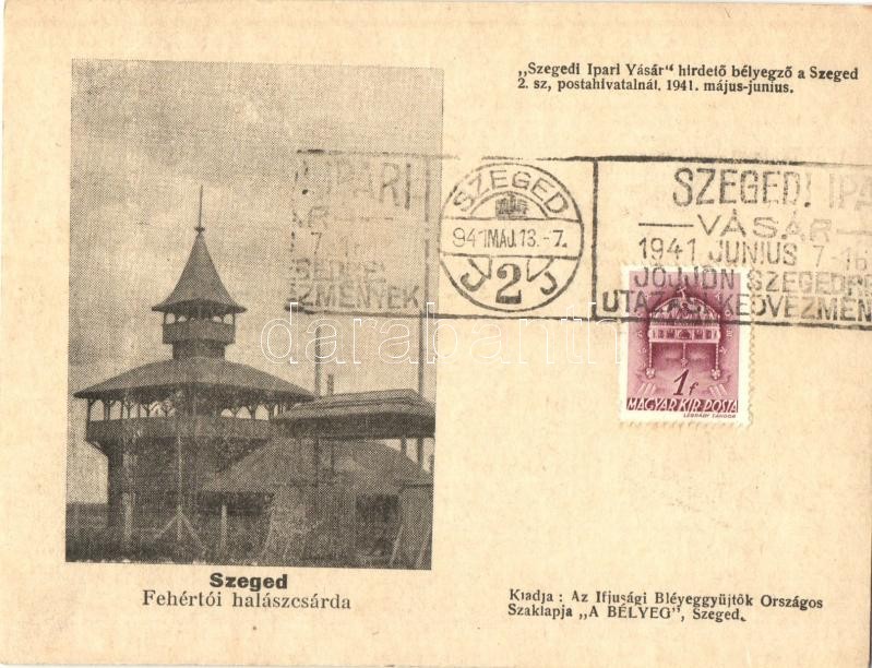 Leírás: Szeged, Fehértői halászcsárda, étterem. Kiadja az Ifjúsági Bélyeggyűjtők Országos Szaklapja + 1941 Szegedi Ipari Vásár So. Stpl. (EK)