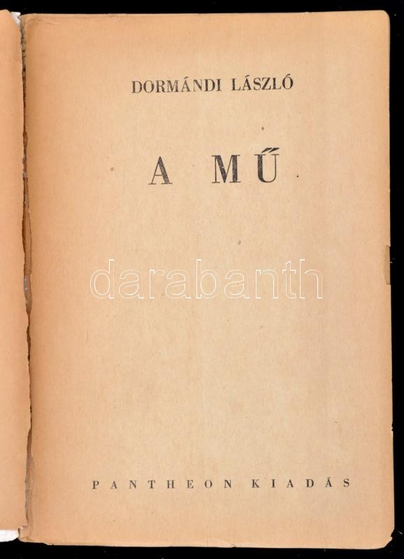 Leírás: Dormándi László: A mű. h. n., é. n. Patheon. Kiadói papírkötésben, kissé viseltes állapotban, néhány lap kijár.